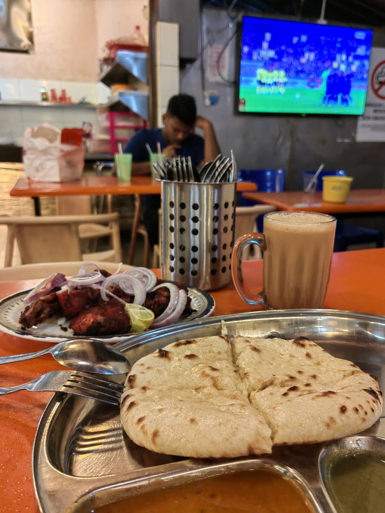 边吃宵夜,边看足球,马来西亚对新加坡,1比0,暂时马来西亚领先🐷 论国力,其实新加坡是很脆弱的,因为没有天然资源,是经不起重大事件如911事件的打击的,反之马来西亚盛产石油、天然气、棕油等等,生命力是比新加坡要顽强十倍以上的💪(新疆馕饼RM7 焖炉碳烤大鸡腿RM9 拉茶RM1.80)